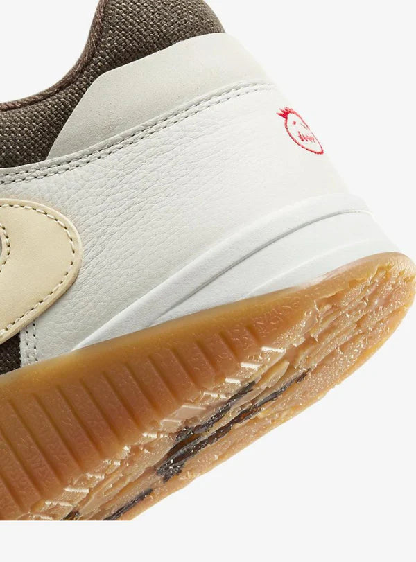 Le nuove Jordan Jumpman Jack TR Travis Scott Sail presentano una tomaia in pelle bianca con dettagli in tessuto marrone alla base, mentre lo swoosh invertito di Travis Scott decora il lato delle scarpe e si presenta in una delicata tonalità Sail. La caratteristica distintiva di queste sneakers, rispetto alle precedenti, è il cinturino centrale con il marchio ricamato. Gli accenti rossi sulla linguetta e il logo Cactus Jack sul tallone posteriore aggiungono ulteriore contrasto e personalità. Il design è completato da una suola in gomma con la scritta "Jack", conferendo un tocco finale distintivo e riconoscibile.
