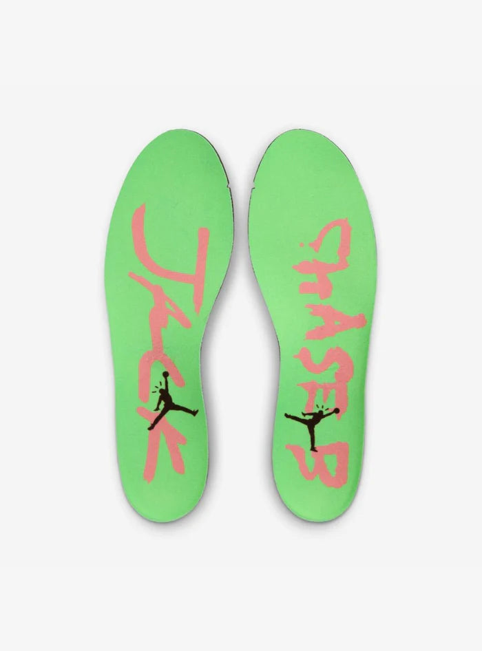Il design è completato da un strap regolabile al centro del piede con logo “TS” di Travis Scott, che aggiunge carattere e espressione al modello.